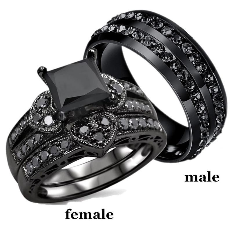 His And Her Couple Ring 10k Black Stainless Steel Engagement