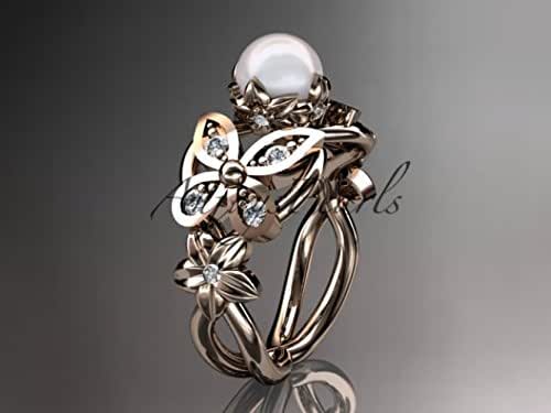 Amazon Com 14kt Rose Gold Diamond Pearl Unique Engagement Ring