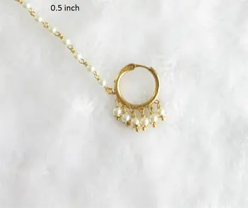 Wedding Gold Pearl Nose Ring Chain Hoop For Pierced Nose
