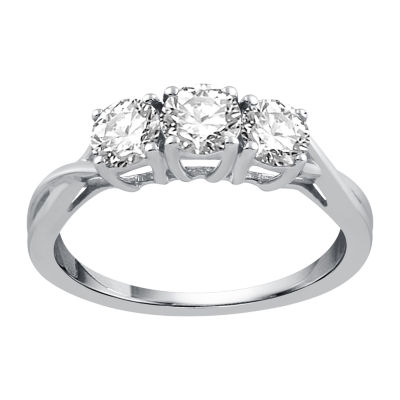 1 Ct T W Round White Diamond 10k White Gold 3 Stone Ring Jcpenney