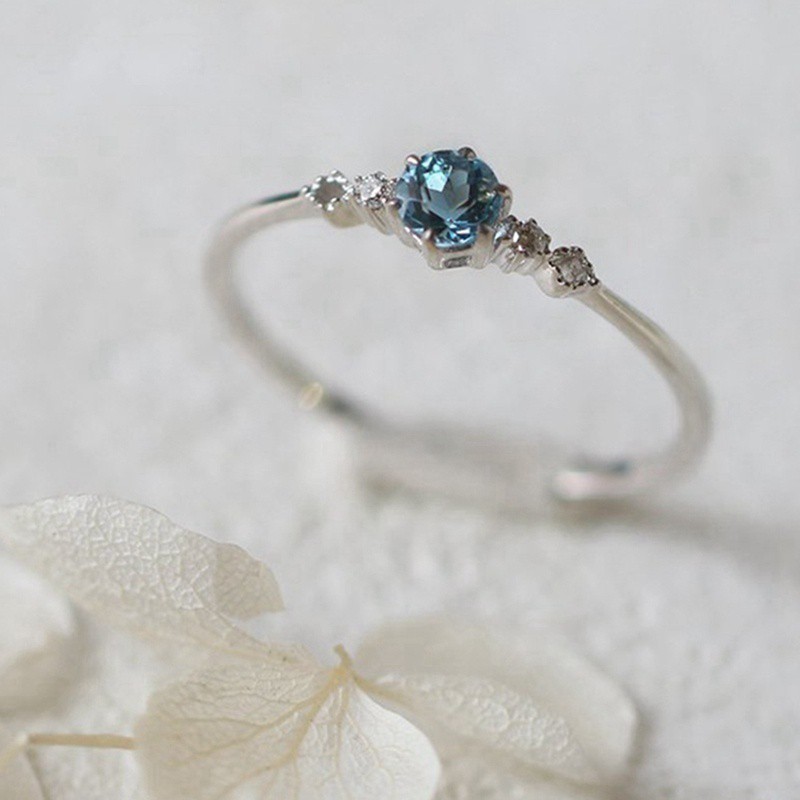 925 Silver Plated Sky Blue 18k Yellow Gold Ring European And