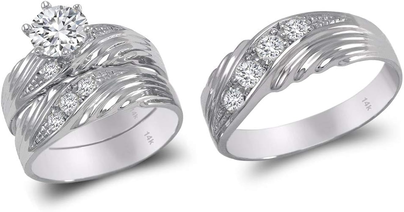 Tousiattar Trio Ring Set 14k Gold 3 Piece Wedding His Engagement