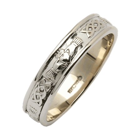 Mens Handmade Celtic Irish Wedding Band 18k Two Tone Gold 10mm Ub968