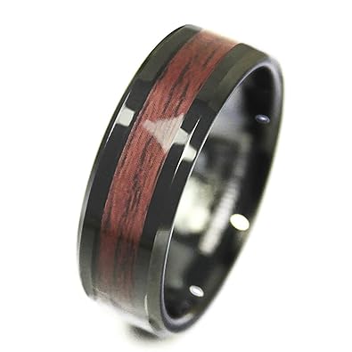 Atop 8mm Black Men S Tungsten Carbide Ring Red Wood Inlay Wedding
