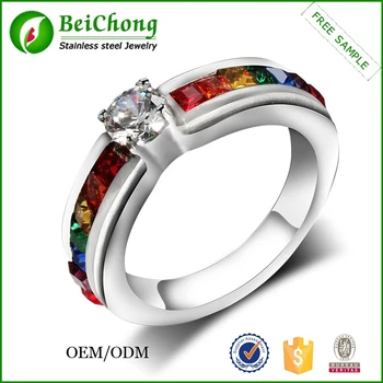 Pride Lesbian Gay Pride Wedding Ring Band Rainbow Ring Center Cz