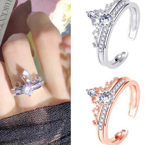 2 In 1 Ring Korean Ring Crown Ring Adjustable Ring Diamond Ring