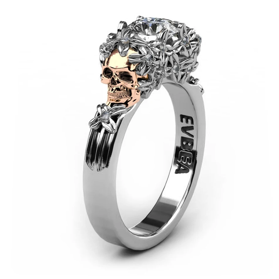 Evbea 2019 Elegant Gold Skull Zircon Ring Women Halloween Jewelry