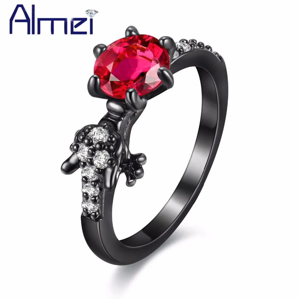 Amazon Com Ayt Red Sapphire Zircon Vintage Black Skull Ruby