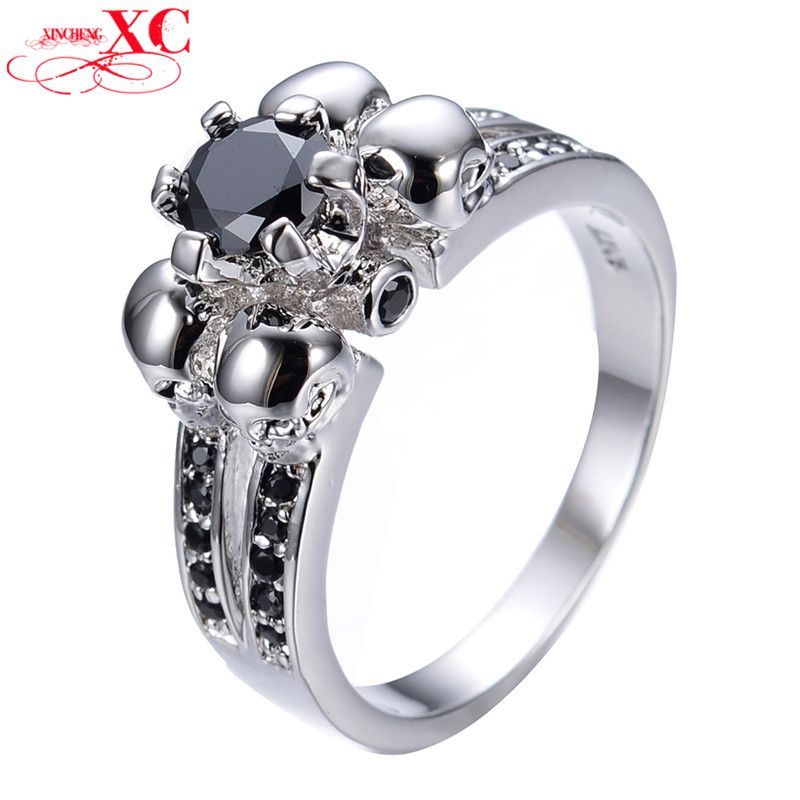 Wholesale Vintage Skull Black Sapphire Jewelry Halloween Gift Sz6