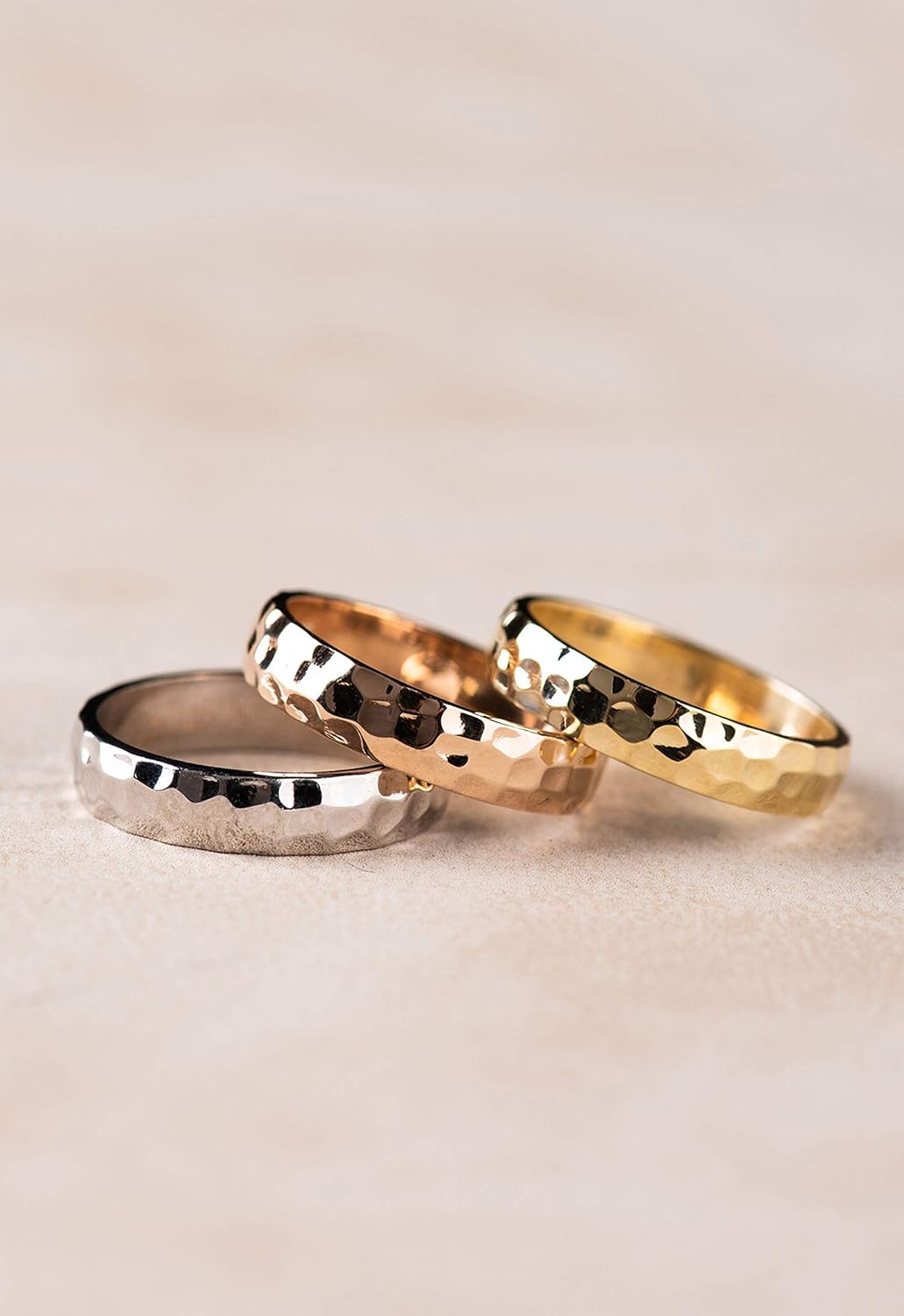Amazon Com Hammered Wedding Band Textured Rustic Ring Hammered