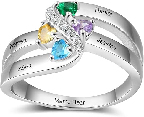 Amazon Com Diamondido Mothers Rings With 4 Simulated Birthstones