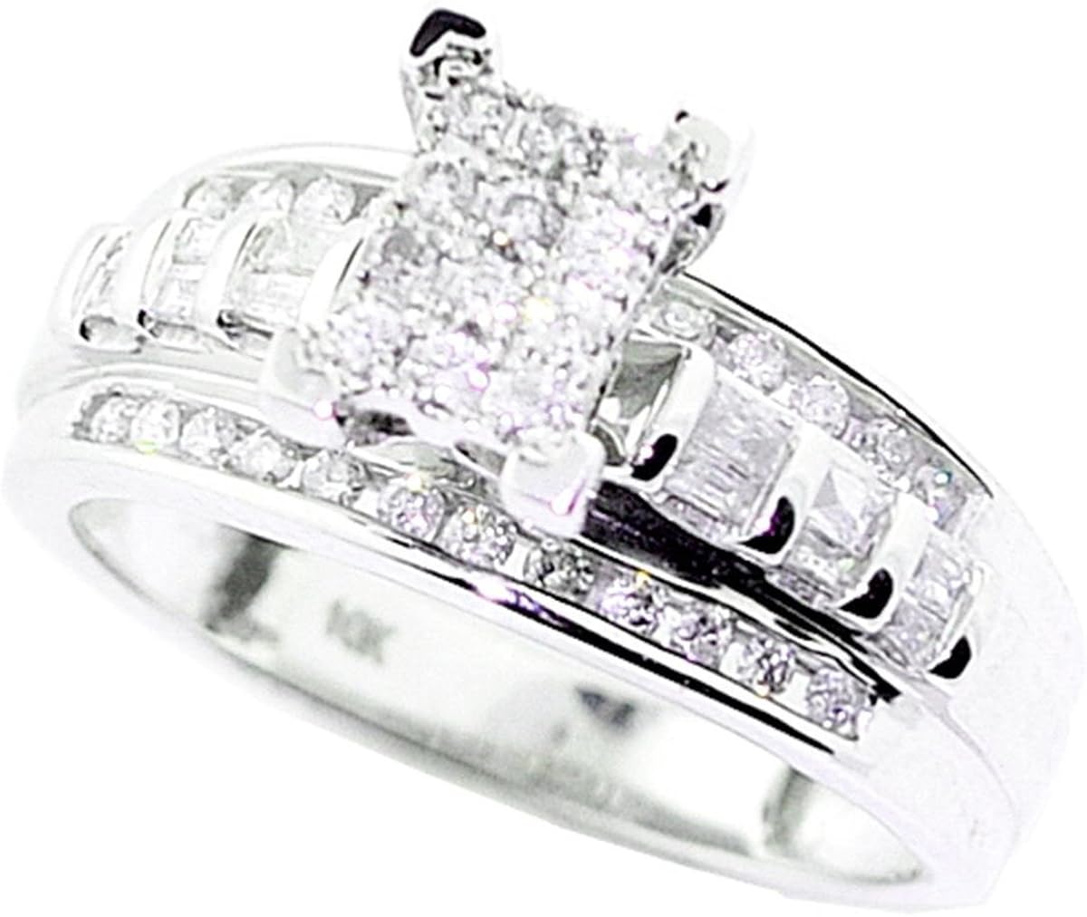 Amazon Com 10k White Gold Wedding Ring 3 In 1 Style 1 2cttw