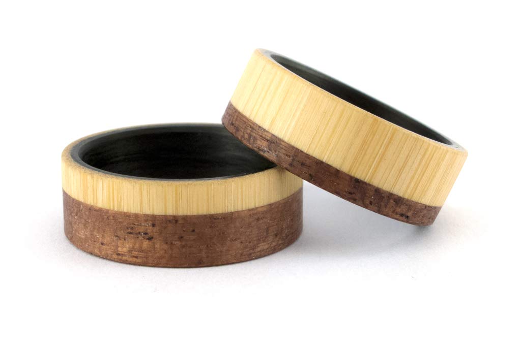 Amazon Com Set Of Carbon Fiber Bentwood And Bamboo Wedding Rings