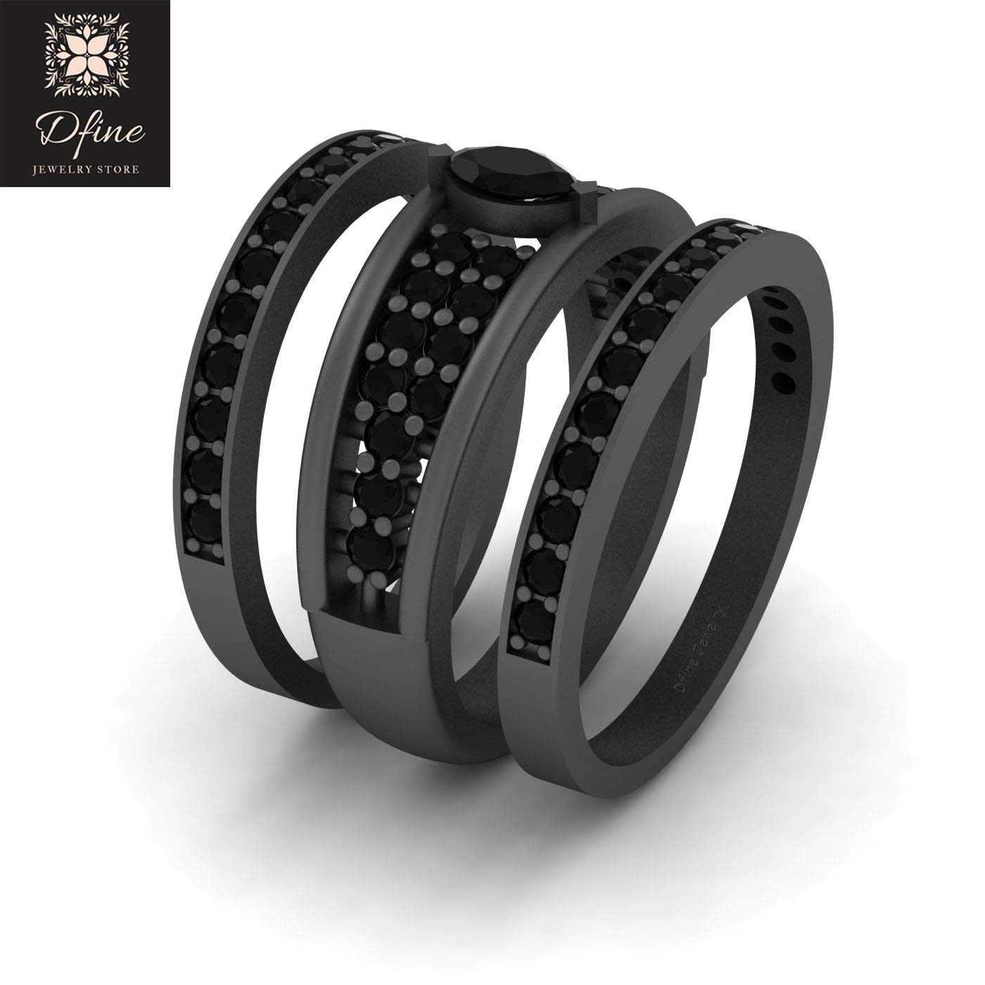 Amazon Com 3pc Wedding Ring Band Set For Women Marquise Cut Black