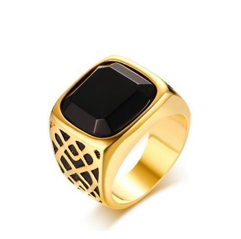2019 Vintage Black Onyx Wedding Ring Gold Color Stainless Steel