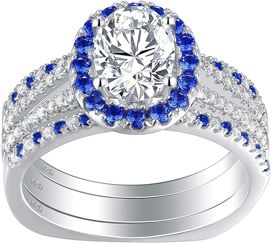 Amazon Com Halo Blue Sapphire Engagement Ring Wedding Band Set