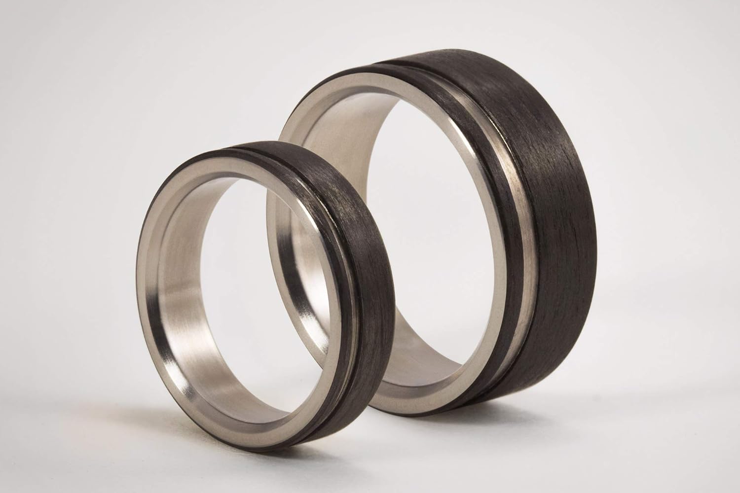 Polished Titanium And Carbon Fiber Wedding Bands Rounded Etsy