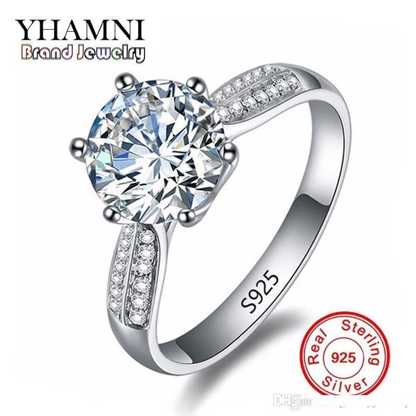 2019 Yhamni Pure Solid Silver Rings Set Big 2 Carat Sona Cz