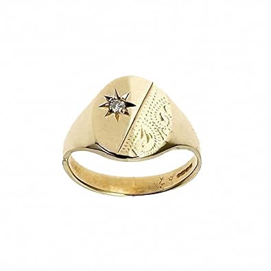 Solid 9ct Yellow Gold Men S Real Diamond Half Engraved Oval Signet