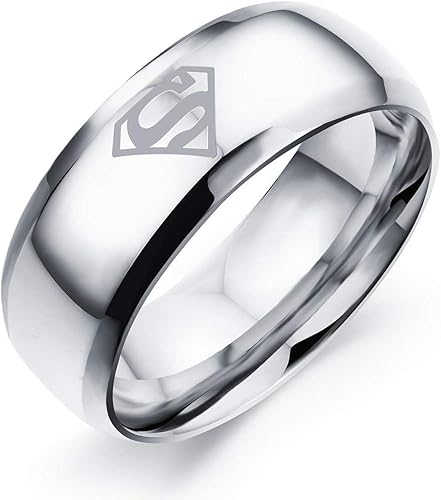 Accessories Superman Logo 8mm Mens Stainless Steel Band Ring