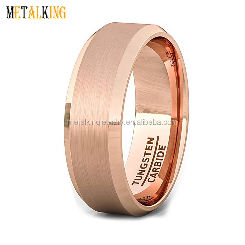 8mm Tungsten Wedding Band Rose Gold Ring For Mens Women Beveled
