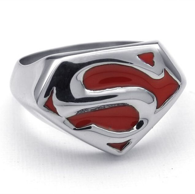 Red Superman Rings 316l Stainless Steel Cool Silver Red Man Of