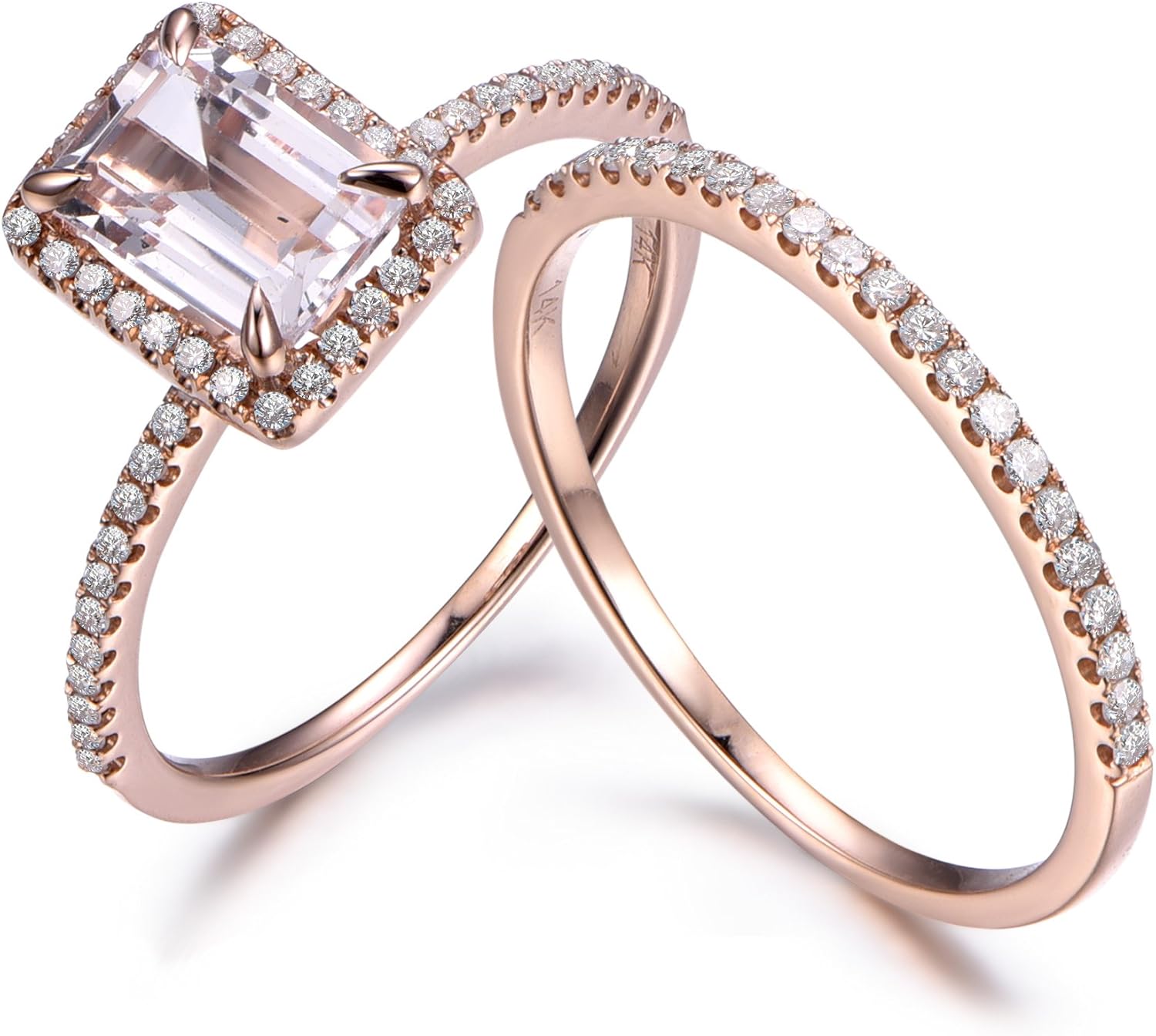 Amazon Com Myraygem Wedding Ring Sets Emerald Cut Natural Pink