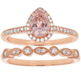 S Collection Pear Shaped Morganite Diamond Halo Ring Set In 14k