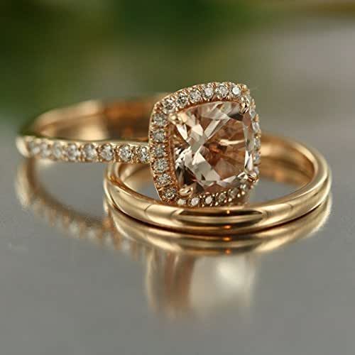 Amazon Com 8x8 Square Morganite In 14k Rose Gold Diamond Halo