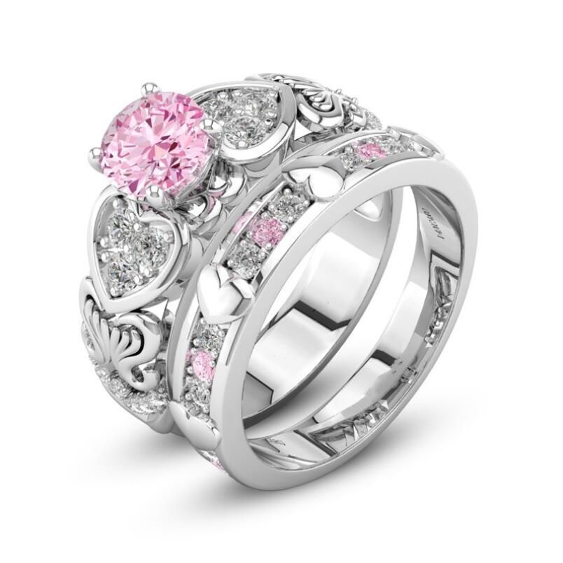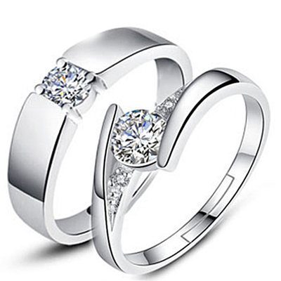 1pair 925 Silver Wedding Engagement Crystal Ring Her And His