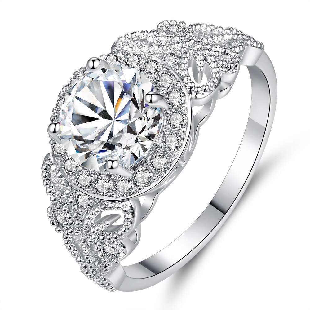 Leaf Top Quality Stone Wedding Rings For Women Ladies Silver Color