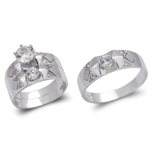 473 676ws White Wedding Trio Ring Set Line Gold Inc