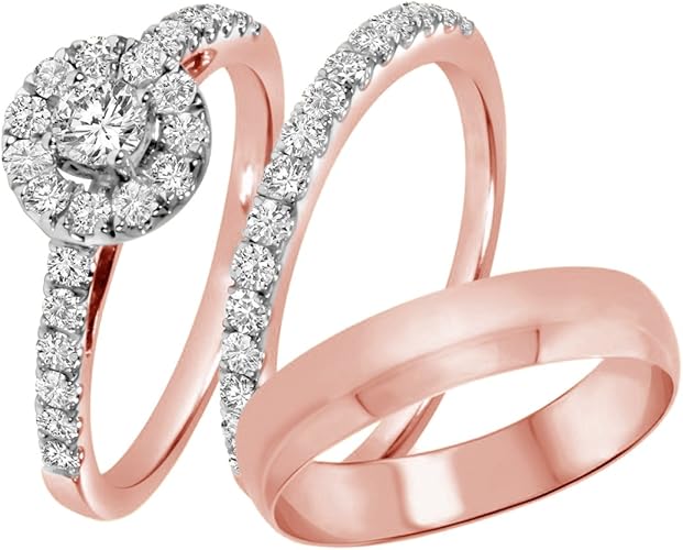 Amazon Com His And Hers Wedding Ring Set Matching Trio Wedding