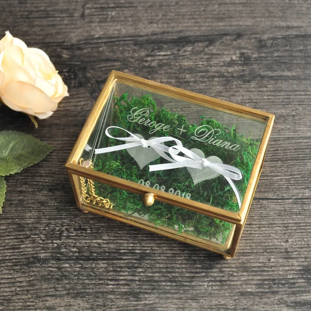 Wedding Ring Box Glass Wedding Ring Holder Floral Ring Box Glass