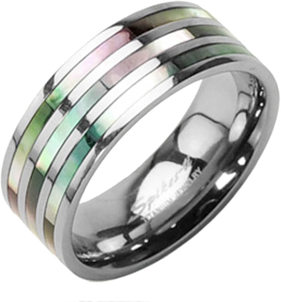 Amazon Com Triple Rainbow Abalone Inlay Titanium Steel Ring