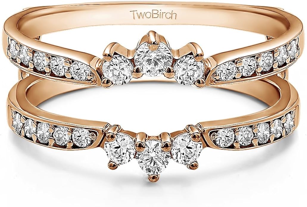 Amazon Com Twobirch 10k Gold Crown Inspired Half Halo Ring Guard
