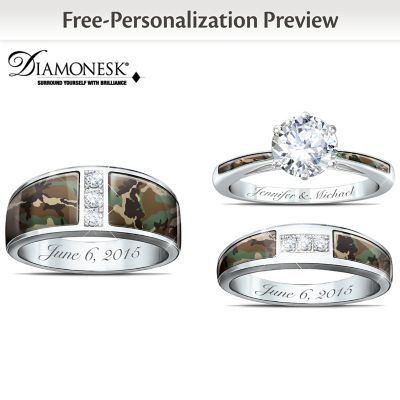 Camo His And Hers Personalized Engraved Wedding Ring Set