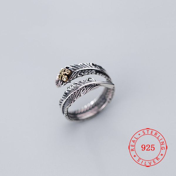 Real Marcasite Silver 925 Rings Fashion Feather Jewelry Gift Women