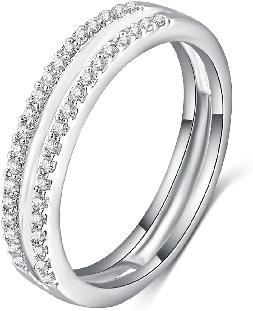 Amazon Com Luckyweng 18k White Gold Simple Half Eternity 2 Row