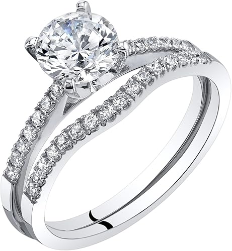 Amazon Com Peora 14k White Gold Classic Engagament Ring And