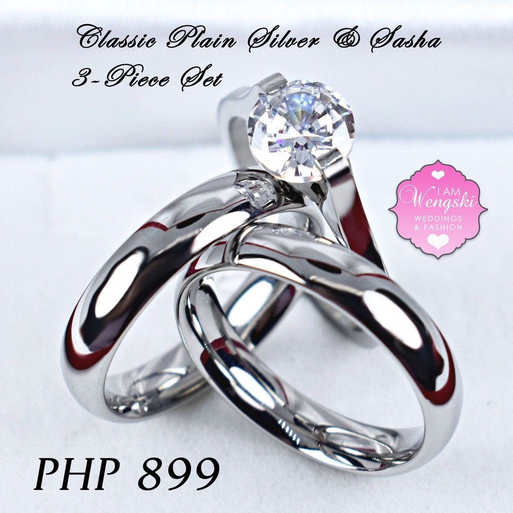 Classic Plain Silver Sasha 3 Piece Wedding Ring Set Shopee
