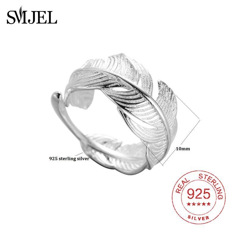 Smjel 925 Sterling Sliver Vintage Leaf Rings For Women Boho
