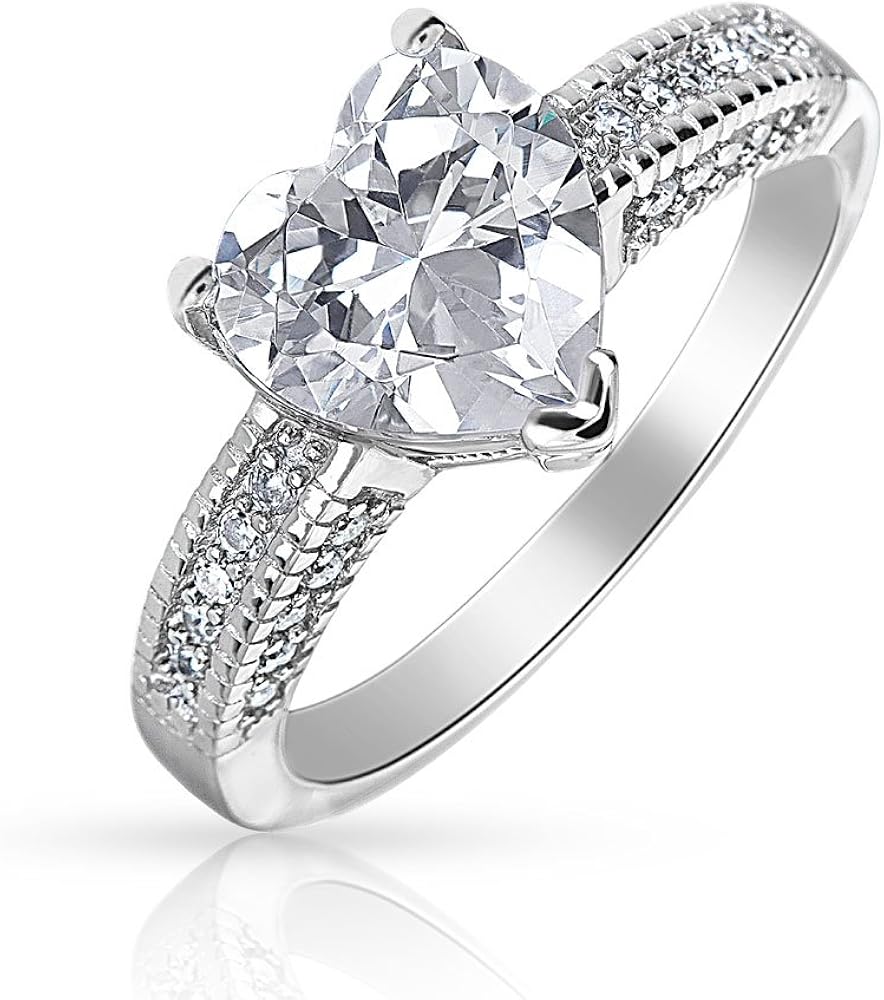 2ct Aaa Cz Solitaire Heart Shaped Engagement Ring Pave Band