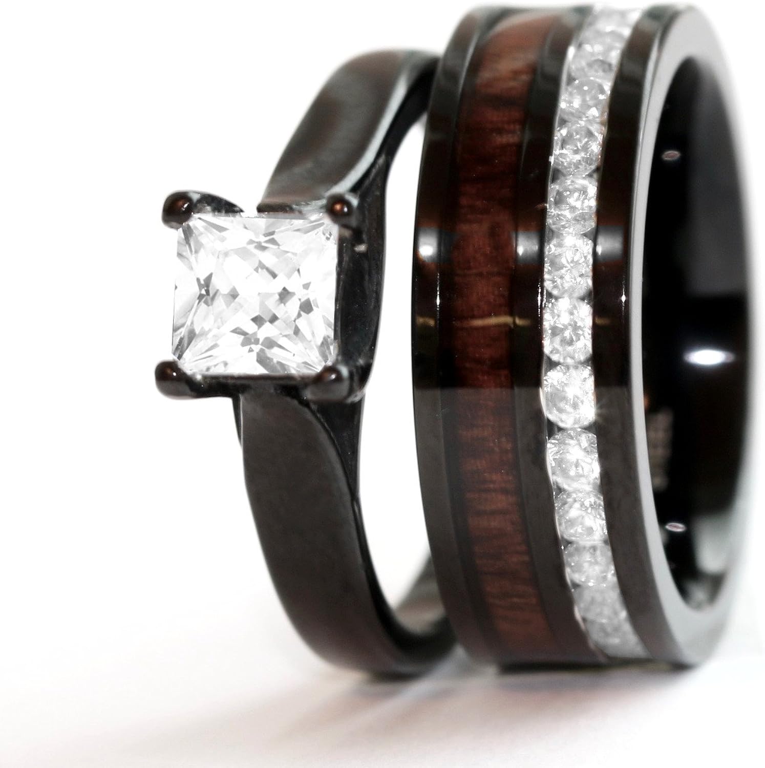 Wooden Wedding Rings Koa Wood Titanium Wedding Set Mens Etsy