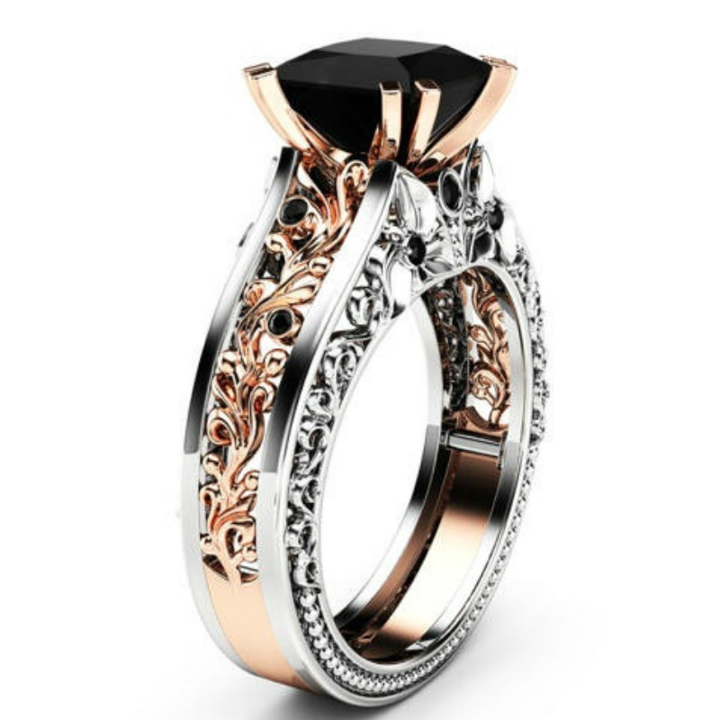 Princess Black Diamond Engagement Ring 14k Rose Gold And 925