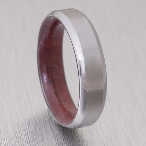 Narra Tungsten Wood Ring With Polished Bevels And Padauk Real Wood